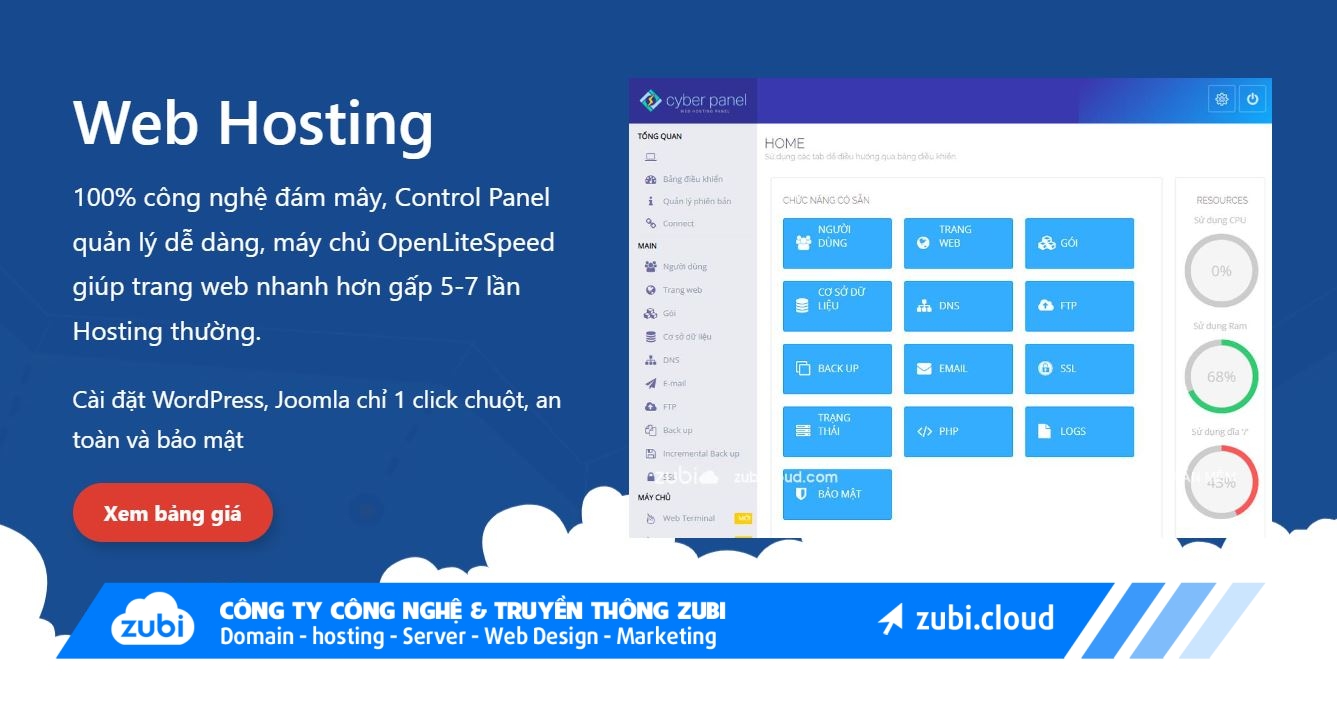 Công ty Zubi cung cấp Giải pháp tối ưu Cloud VPS thay thế Hosting cho Website, Dịch vụ cài đặt