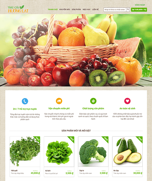 - Trang chủ: Thiết kế giao diện đồ họa đẹp mắt, hiển thị đầy đủ chuyên mục trên web (có thể chỉnh sửa trên trang quản trị), hiển thị hình ảnh, logo thương hiệu